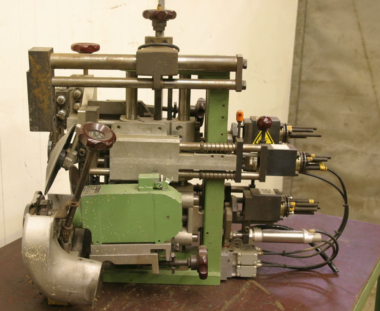 Modular aggregate unit, format processing unit, machining unit, milling unit, form milling unit, jointing milling unit, end-cutting unit, double-end tenoner, edge processing machine, scoring motor, chipper motor, milling motor for edge processing machine -HOMAG cutting unit for cutting off edge protrusions on the front and rear edges -with heavy leadership -Milling unit: swiveling -1x Perske motors -Engine Type: -Power: 0.75 kW -Voltage: Volts -Frequency: 300 Hz -Speed: 8,600 rpm -Other engines with different performance levels are available from us for an additional charge. -Dimensions: 990/620/H340 mm -Weight: 52 kg