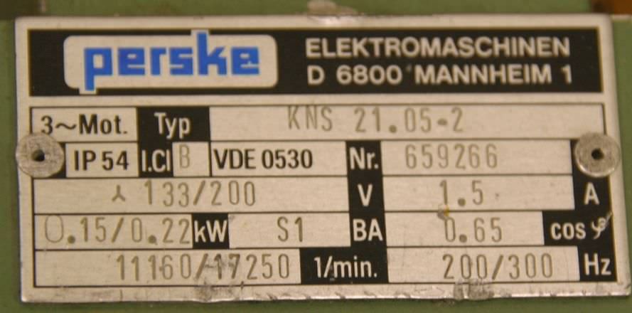 Double-end tenoner, edge processing machine, scoring motor, chipper motor, spindle motor, milling motor -Power: 0.4 kW at 11300 rpm at 200 Hz -Voltage: 133 volts -Receiving shaft: Ø 20 mm -Tool: mm -Dimensions: 250/60/H130 mm -Weight: 3.8 kg