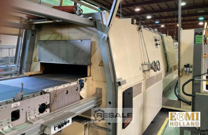 1 of used trayshrinkpacker, make Kisters (KHS) type 140/60, new 1989, operating side left. Fitted with Siemens S7 controls / HMI and Bosch Rexroth servo drive MI-technology in 2012. Nordson hot-melt unit Originally supplied to pack food cans as 4x3 and 6x4 on tray plus film. Last used for food cans as 6x2 and 4x3 on tray + film. Size-adjustable via spindles and servos. Maximum capacity 60 trays/minute (depending on product).