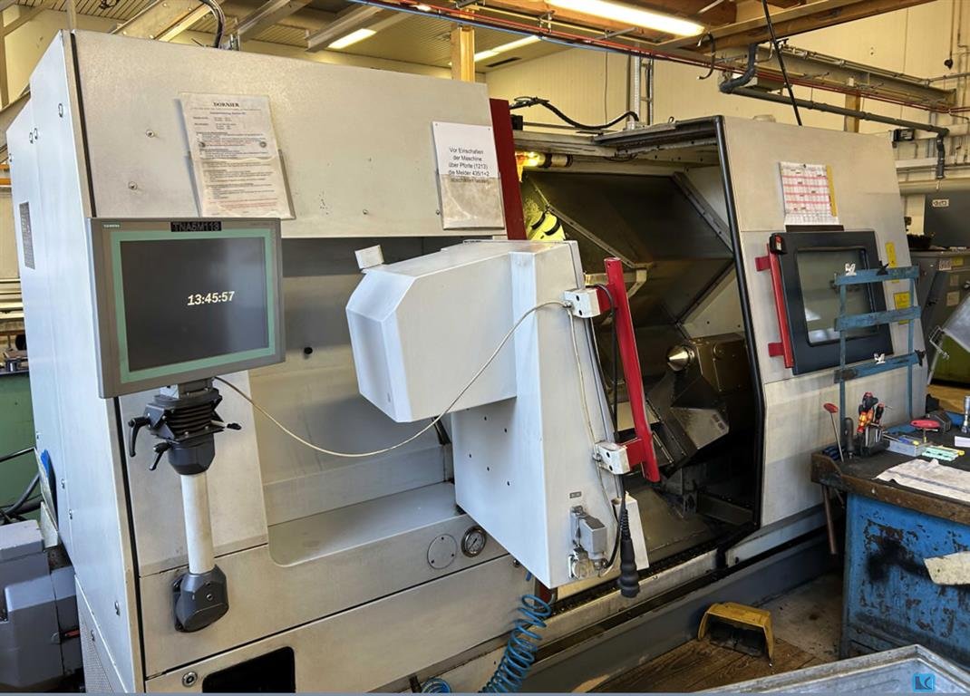 数控自动车床 特劳布 TNL 32-7 • 版本 TNL32/TNL32K 交替模式 • 控制 TX8i-s • 主轴通道 32 mm,带 C 轴 • 副主轴包括部分空心应力 • 左轮手枪顶部 X/Y/Z/H 轴:10 发双驱动 • 左轮手枪底部X/Y/Z/H轴:总驱动9发;副主轴驾驶 • 8倍;总驱动器 3 工具 IK • 带线性夹具的工件偏转单元 • 冷却液供应 3 巴 • 冷却液供应 8 巴 • 铰链式带式排屑器,卸料高度1000mm • 玻璃刻度 X 轴刀塔顶部/底部 • 用于冷却润滑剂的紧凑型带式过滤器:过滤器细度约 30-40μm • 卡夫和鲍尔的 CO2 灭火系统 • 棒材装载弹匣 FMB LSK 38, 适用于 3.2 m 的杆 • 机器仅使用切削油操作 (当时的原始价格为340.000欧元