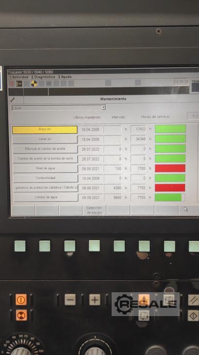 TRUMPF TRULASER 5030(6kW)CO2レーザー切断機。 2008年。 ロードマスターローダー付き。 運用中 – レーザー出力: 6000 W. – 作業領域 (X x Y x Z): 3,000 x 1,500 x 115 mm。 – 最大個数重量: 1,100 kg- 速度 pos.同時:300 X + Y m /分 — 最大スチール厚さ:25ミリメートル — 最大ステンレス鋼厚さ:25 mm — 最大アルミニウム厚さ:15 mm – コントローラ: シーメンスSINUMERIK 840D – 機械営業時間オン: 34,348 時間 – 落雷時間オン: 17,422 – 精度: +/- 0.1ミリメートル 寸法L / W / H:9300 / 4,600 / 2,200ミリメートル 精度、シンプルさ、高性能生産