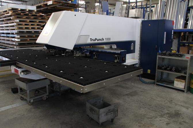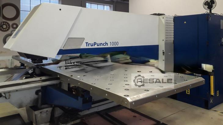 The machine was purchased directly from Trumpf in 2015. It was a demonstration machine from 2012, which had previously been used in the Trumpf training workshop (there only a few operating hours). Later, it was used in single-shift operation in the housing production of welding machines. Therefore, only 15700 operating hours. Exclusively in the sheet metal sector, especially sheet steel 1.25 and 2.0mm, occasionally 3mm. No stronger material. No known defects, machine is currently still in use, available from May 26. Reason for sale: Discontinuation of production. The "Compact Edition" of the TP1000 is optimized for a part size of 1250x1250. Larger formats can be done with the "Reset" function, additional tables are necessary. The outstanding advantage of the "Compact" machine is the small space requirement of only 4.13 x 5.84 m. The machine is equipped with almost all availab ...