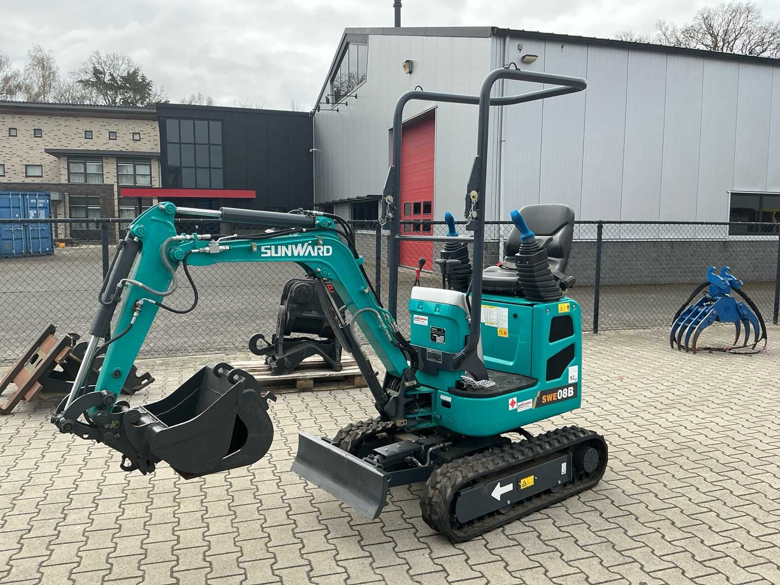 Including lock bucket 1000mm, backhoe 450mm, banana bucket 220mm, CW05 hydraulic switch, 3rd function, led work light, blade 980mm, adjustable undercarriage 980/1300mm, 2nd row speed, heating, radio, Auction-ID: A1-40132-56