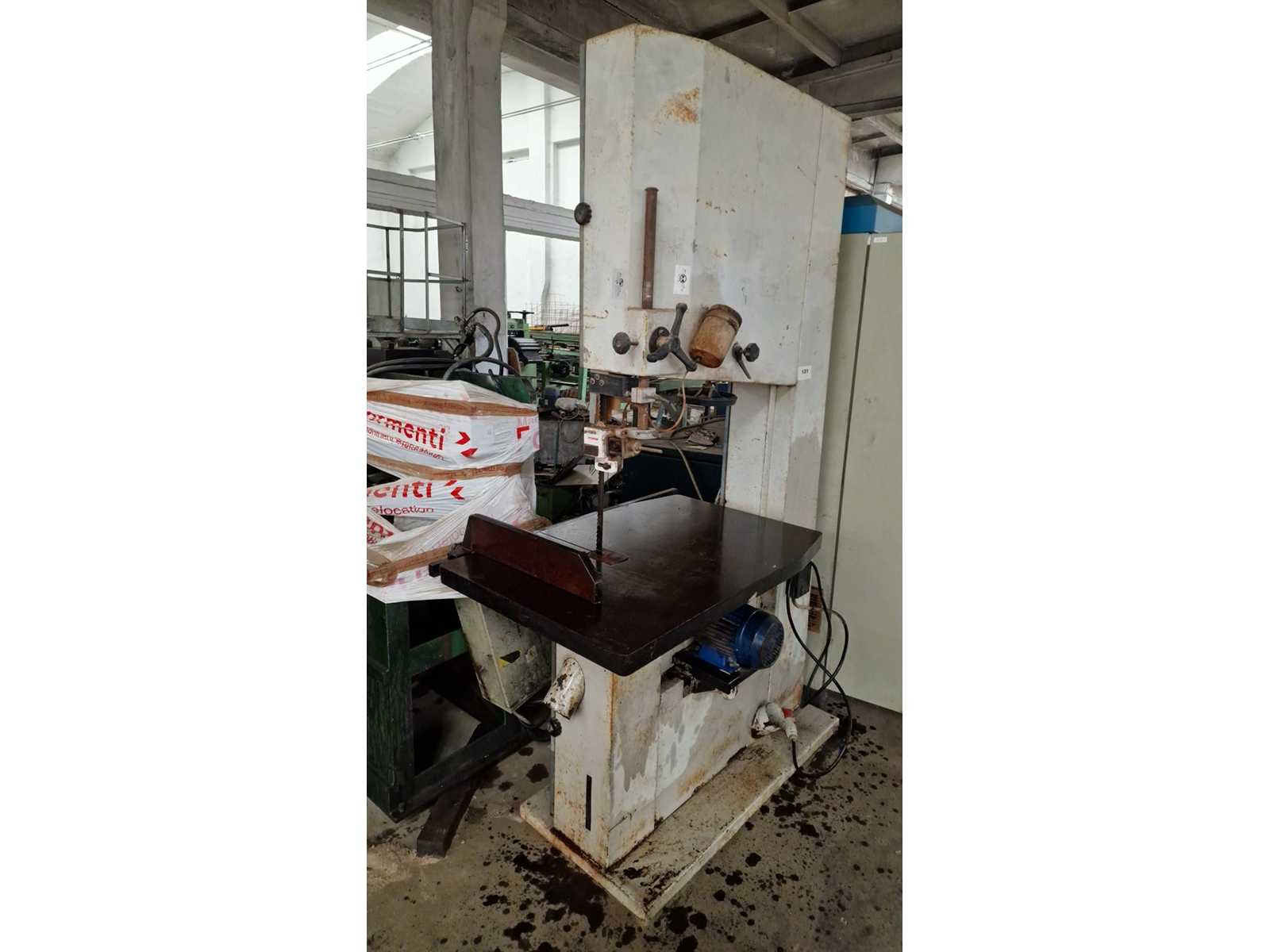 CEG M. 100-2/FPC – Band Saw General data: Manufacturer: CEG S.r.l., San Mauro Pascoli, Italy Model: M. 100-2/FPC Machine type: Band saw Weight: approx. 500 kg Dimensions (L x W x H): approx. 1550 x 850 x 2100 mm Technical details: Motor type: Three-phase asynchronous (MOT. 3~) Power: 4 kW (approx. 5.5 HP) Rotation speed: 2913 rpm (2-pole motor) Voltage: 380 V (star connection) Current: 8.1 A Description: Industrial band saw manufactured by CEG, designed for high-speed cutting applications. The machine is suitable for processing metal or wood materials and offers reliable performance thanks to its robust construction and high-speed motor. Auction-ID: A7-45351-9