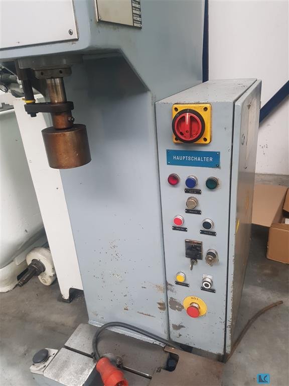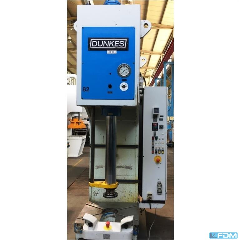 pressure:25 tthroat:400 mmstroke:1000 mmdistance table/ram, max. stroke up, adjustment up:1100 mmtable surface area:620 x 620 mmHole in the table:80 mmtable height over floor:650 mmram surface:110 mmspeed down:300 mm/sspeed up:500 mm/sworking speed:14 - 85 mm/soil volume:400 lpower requirement:6,0 kWweight:3,8 tdimensions (WxDxH):1,5 x 2,1 x 3,9 mGerman Safety: permitted for manual loading:UVV 11.064 - VBG 7n5.2