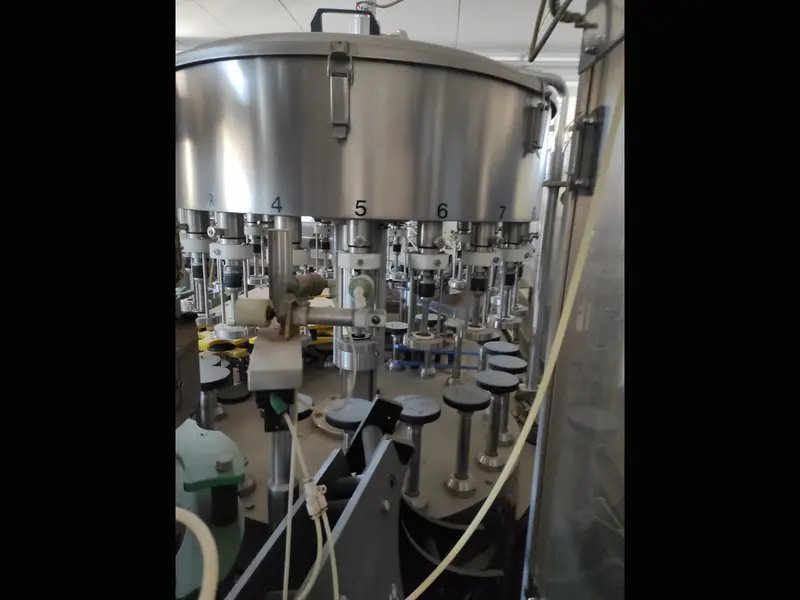 Вживаний наповнювач моноблок FIMER 24/28 / 6s Цей винний наповнювач має 24 промивні затискачі, 28 насадок для наповнення GT і 6-головну машину для коркування Arol. Нещодавно машина пройшла повне технічне обслуговування. Він також оснащений вакуумним насосом і новими водяними корпусами. Існує 6 різних форматів для наповнення різних пляшок вина. З 375, 750 і 1500. Станції для промивання мають просту систему подачі води в пляшку і використовують одноразову обробку. Тон використаного моноблоку наповнювача ...