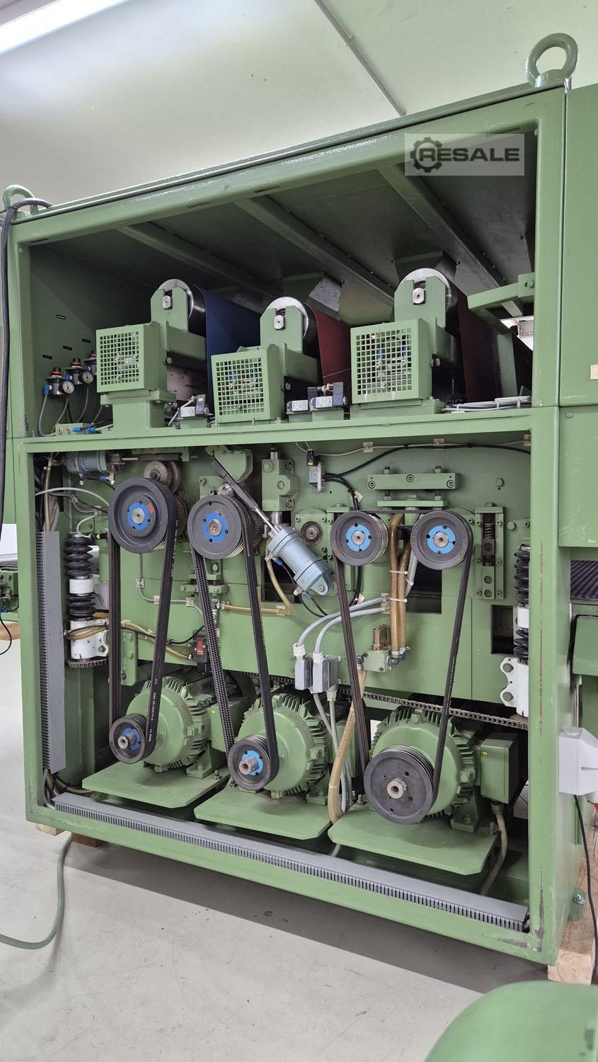 Working width: 1100 mm Number of sanding units: 3 st. Workpiece thickness max.: 150 mm Wide belt sander BÜTFERING, AWS-3E-1100, # 0-001-747-312, year 1991