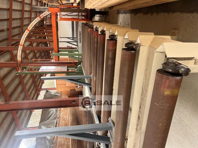 ES 121 з роликовим конвеєром і стаціонарним пилячим блоком — класичний розріз для поділу довгих пакетів на фіксовані довжини