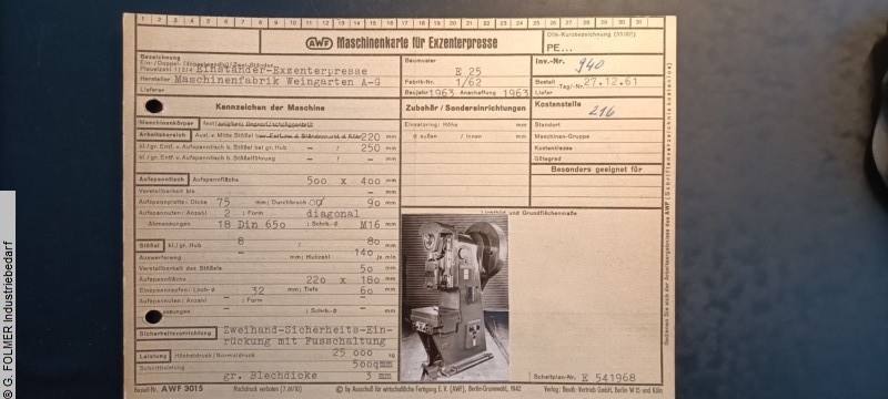 Одностійкові ексцентрикові преси WEINGARTEN E 25