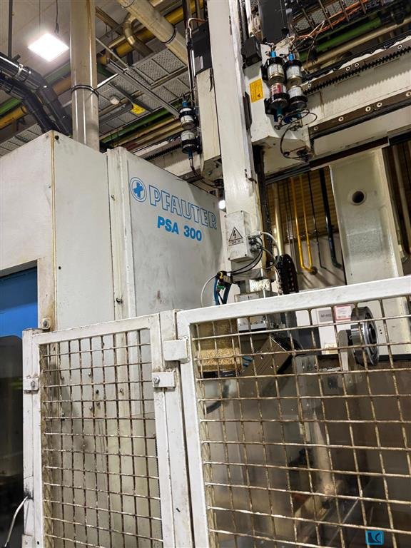A Pfauter vertical CNC gear hobbing machine is available. Modules min./max.: 1/3, max. workpiece diameter: 150mm, max. tooth width: 150mm, milling head tilt: +/-45°, milling cutter axis-table axis distance: 10mm-160mm, table diameter: 160mm, table bore: 63mm. Tool holder: SK40, max. cutter diameter: 130mm, max. cutter length: 220mm, speed: 600rpm, feed: 1500mm/min, tangential path: 170mm, rapid traverse: 3m/min. Machine dimensions X/Y/Z: approx. 4000mm/3000mm/2500mm, weight: approx. 6500kg. On-site inspection is possible.