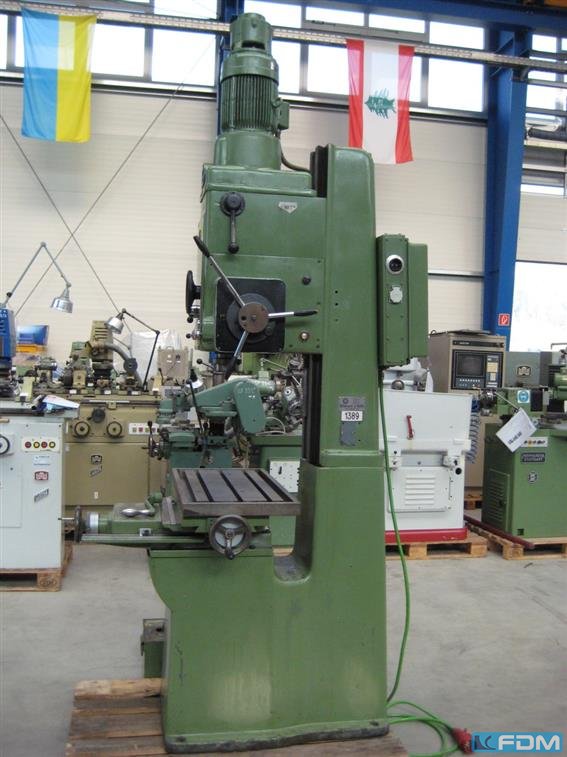 Capacité de perçage max. acier et filetage : 60 mm, vitesse de perçage : 56-1250/min, puissance du moteur : 5,5 kW, hauteur : 2400 mm. La machine a été régulièrement entretenue, sans documentation technique, une inspection sur site est possible.