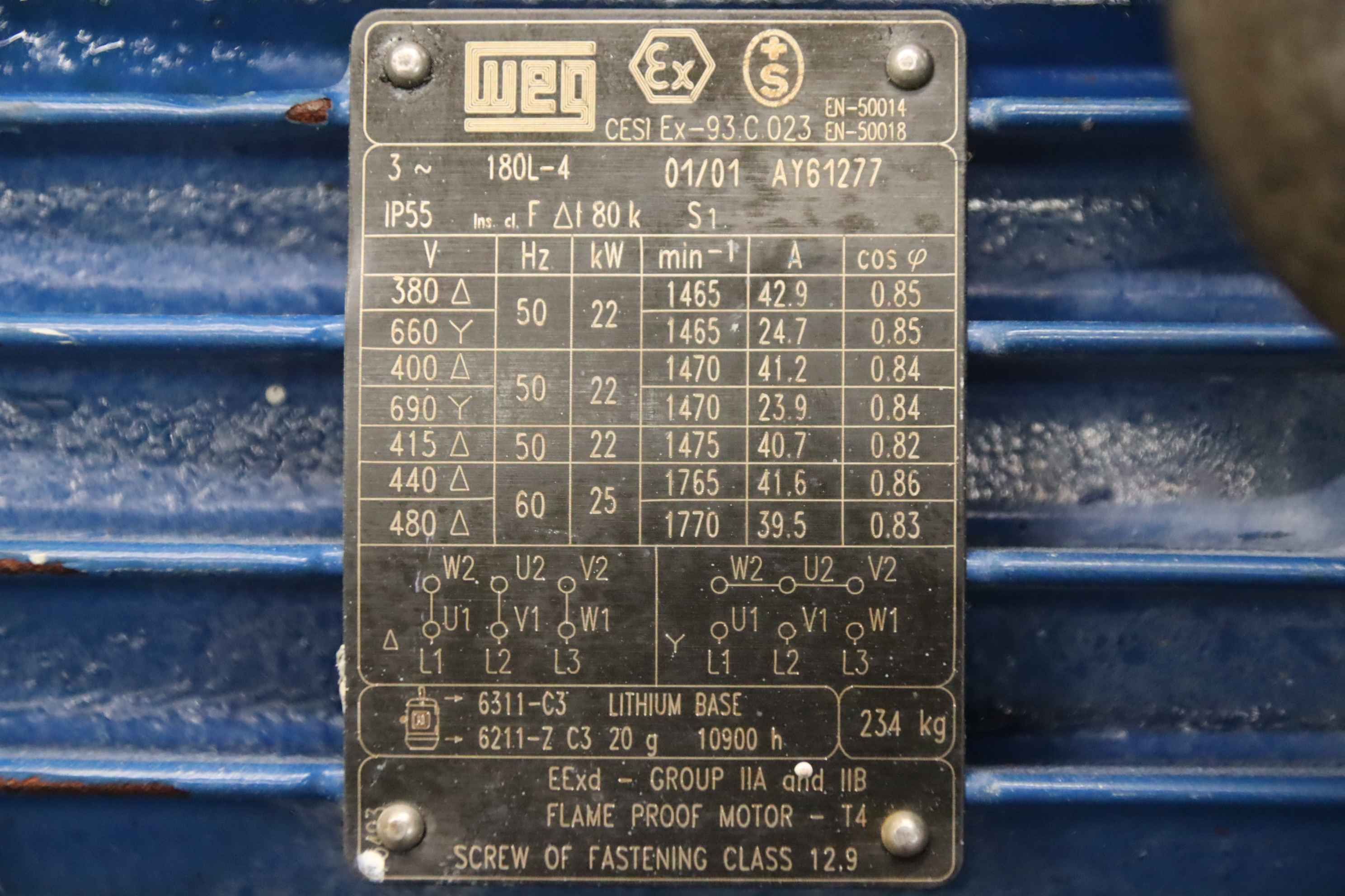 未使用の防爆三相モーターWEGが利用可能です。電力: 37kW、電圧:380V-415V / 660V / 460V、周波数:50Hz、極数:2、サイズ:200M / L、保護等級:IP56、防爆:Ex eb、ゾーン:1、グループ:IIB、温度クラス:T4(135C)、冷 タイプ:TEFC(クローズドファン付き表面冷却)、絶縁 ラス:E、温度クラス:G、動作モード:S1。ドキュメン が利用可能です。立入検査が可能です