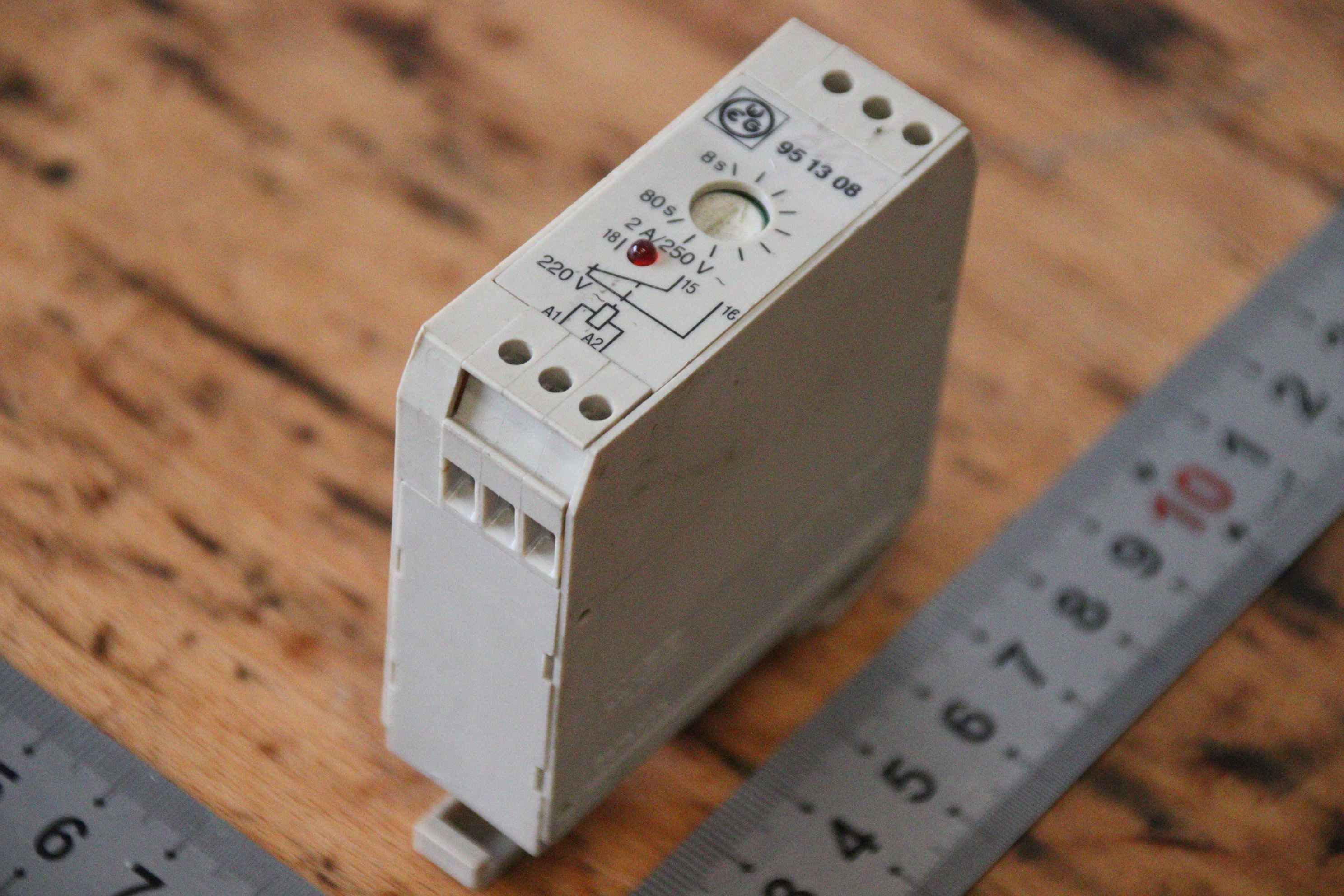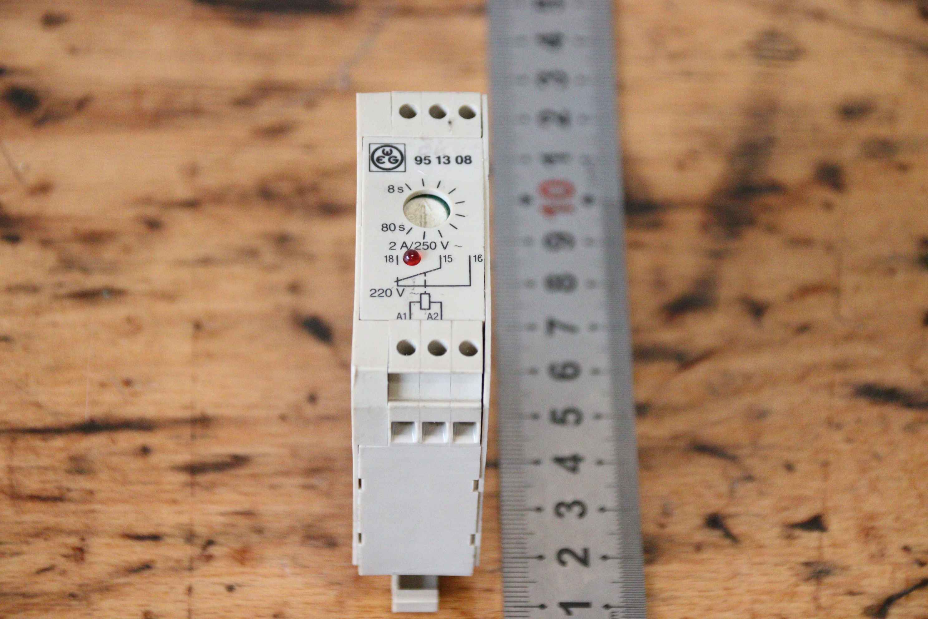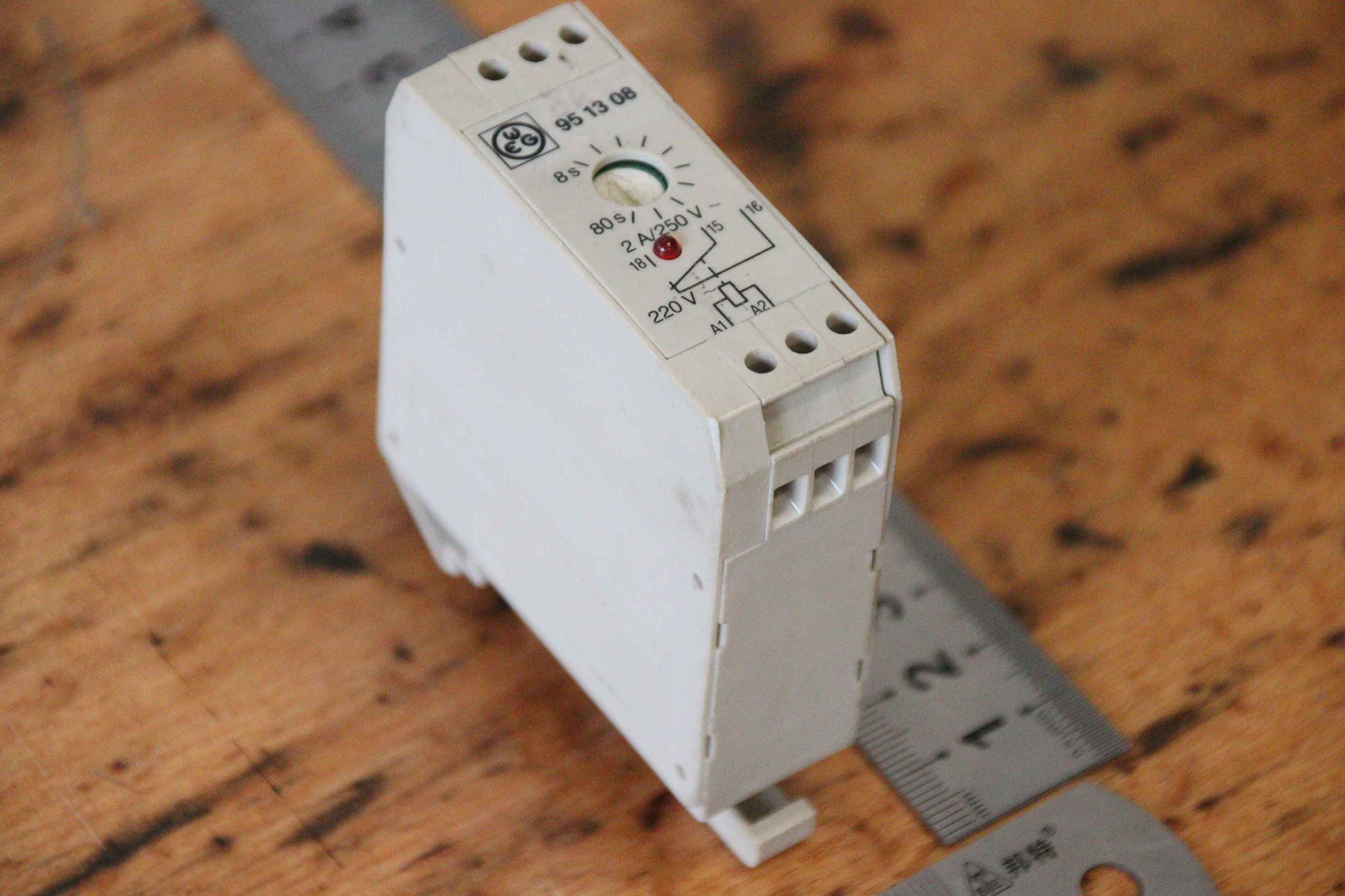 Safety relay, safety control, emergency stop switch, switching device, undervoltage relay, safety switching device, time relay, multifunction relay -Manufacturer: WEG, time relay -Type: 95 13 08 -Number: 4x relays available -Price: per piece -Dimensions: 65/23/H75 mm -Weight: 0.1 kg