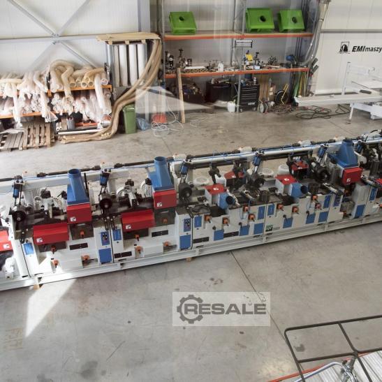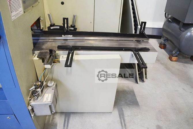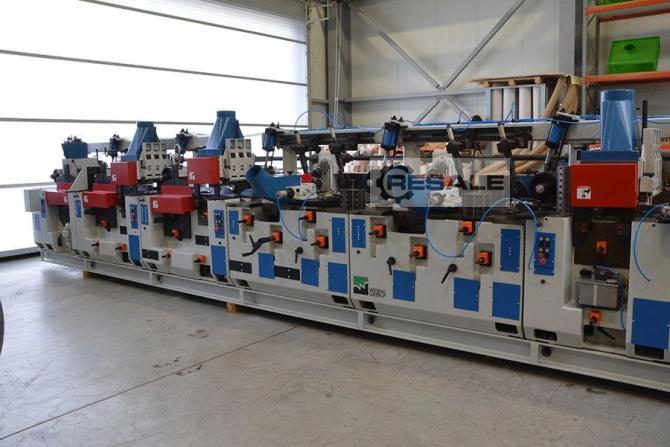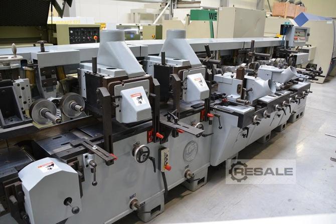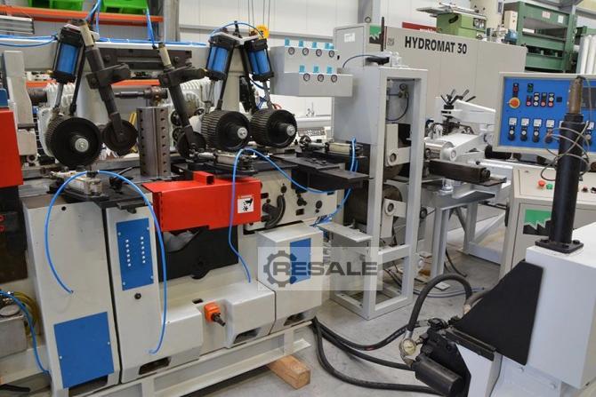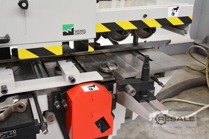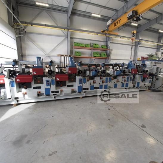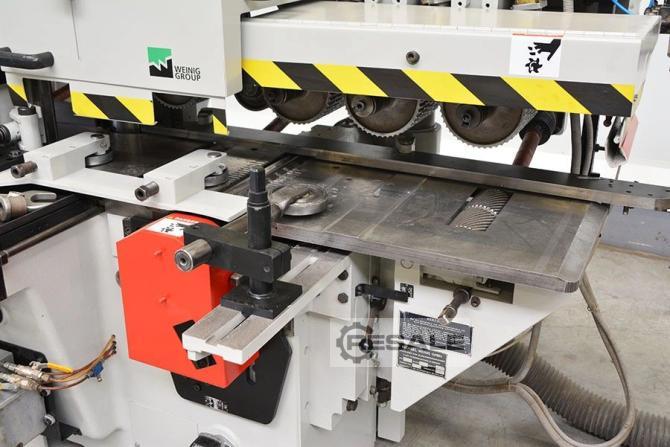 Weinig Hydromat 23C 四面刨床 工作宽度230毫米 工作高度:160毫米 主轴数:7 主轴布局: 1. 降速15千瓦 2.7.5千瓦的功率 3.左转7.5千瓦 4.Top 15千瓦 5. 低功率30千瓦(多锯) 6. 降低7.5千瓦(水力支持) 7.上段7.5千瓦(水力支持) 主轴转速6000转/分钟 主轴直径 50毫米 工作台上的4个拉滚轮 逆变器可调进给速度最高可调至36米/分钟 卡丹轴驱动进给 气动卡钳 技术文