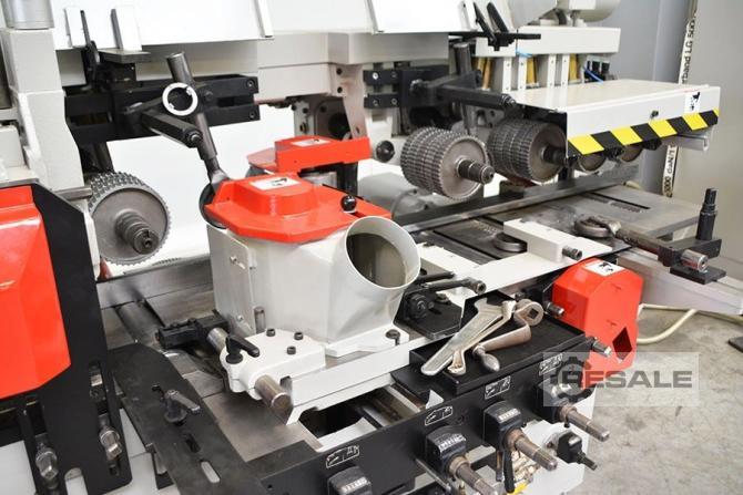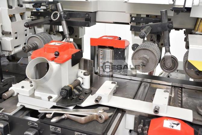 规格: 进给长度:1980 mm 工作宽度: 220 mm 工作高度: 120 mm 主轴:Ø 40 mm 主轴数量:8 轴传动 (7.5 kW) 装机功率:64 kW 电压:380 V 主轴配置: 1:底部(5.5 kW) 2:右(5.5 kW) 3:左(5.5 kW) 4:右(5.5 kW) 5:顶部(7.5 kW) 6:底部(7.5 kW) 7:顶部(11 kW) 8:底部(7.5 kW) 设备: 配件齐