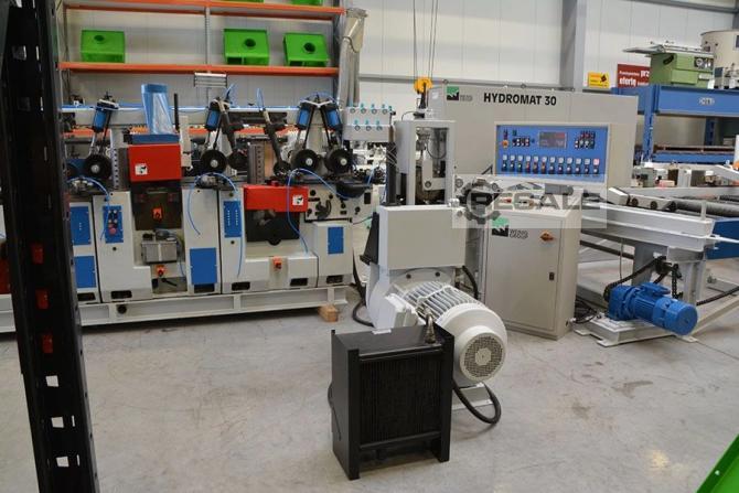 威力四面刨床包括自动化、双横切锯、进料和抽气系 。1) 威力 Hydromat 22 BL 自动润滑四面刨床,制造年份:1987,工作宽度:220mm 工作高度:140mm,头数:7,头布置:下/右/左/右/上/ 底/下,主轴直径:50mm。2) Kellfass 自动化单元由双横切锯组成,长度:5000mm,缓冲横向 送机和气动辊筒进料。可以进行现场检查