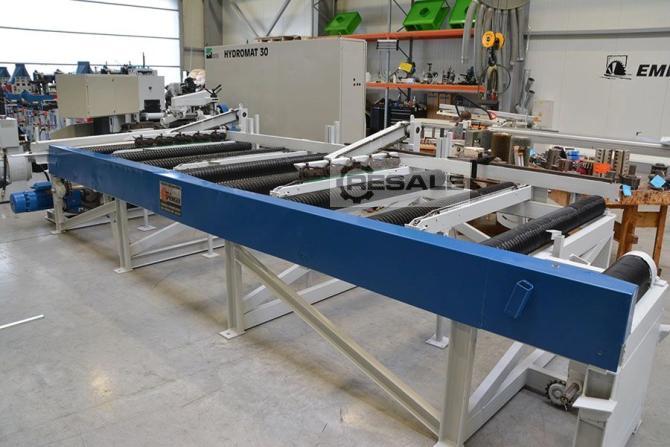 Weinig Hydromat 23 刨削线,带进出料系统,制造年份 2005,- 9个主轴:B-R-L-R-L-T-B-T-B,- 最大进料速度 60 米/分钟,- 配备 Powercom,包括:, - 木材包装的横链运输,- 倾斜提升机,- 堆叠棒运输带,- CSP 自动进料系统,- Weinig 成型机 Hydromat 23,- 带交叉运输的出料系统,- 2 件。弗洛姆自动绑带
