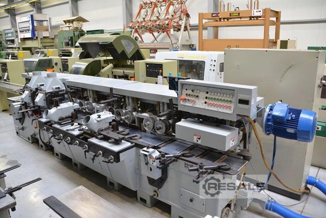 威力 PFA 17N 型多模机 二手机 6 轴 使用工具 - 组成 : 1轴:平面刨床。电机功率 Hp 5,5 2 轴:主轴成型机。电机功率 Hp 4 3轴:主轴成型机。电机功率 Hp 5,5 4 轴:主轴成型机。电机功率 Hp 5,5 5 轴:厚度刨床。电机功率 Hp 5,5 6轴:平面刨床。电机功率 Hp 5,5 入口长度 mm. 2000 进给速度:从7.8到58.8吨/分钟 最大有效工作宽度 mm. 170 最大有效工作高度 mm. 120 润滑系统 重量公斤。2600 伏特。380/50