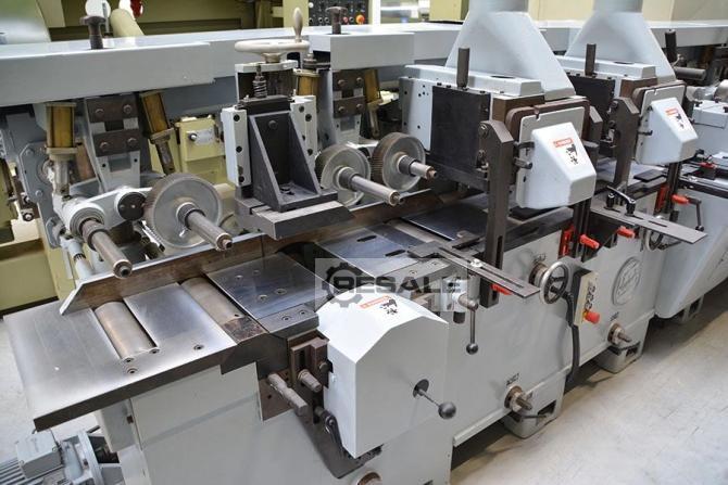Weinig Hydromat 23 四面刨床 60 米/分钟 工作宽度230毫米 工作高度:160毫米 主轴数:5 主轴布局: 1. 降低15千瓦功率 2.11千瓦功率 3.左转11千瓦 4. 上15千瓦功率 5. 降低7.5千瓦功率 主轴转速6000转/分钟 主轴直径 50毫米 工作台上的3个拉滚轮 逆变器可调进给速度,最高可达60米/分钟 卡丹轴驱动进给 气动卡钳 技术文档 机器尺寸:300x180x170cmH 重量:3500公斤 净价130,000波兰兹罗里