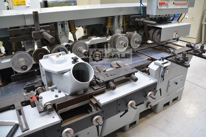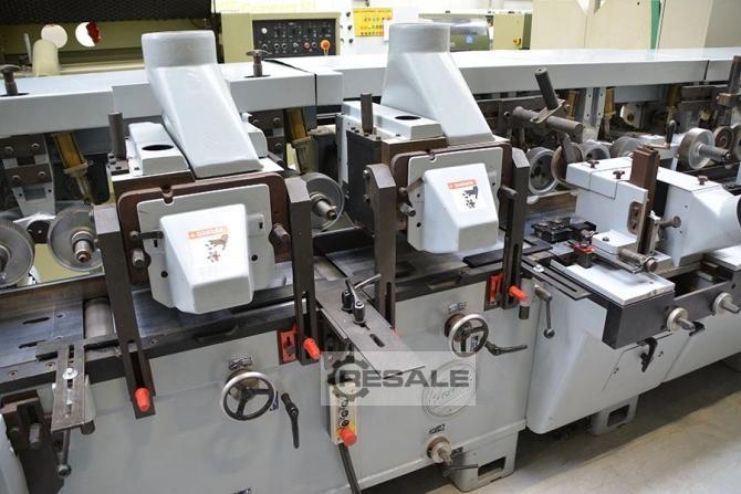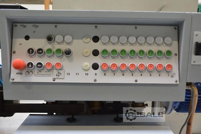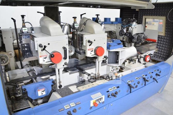 工作宽度 230mm 工作高度 120mm 6 头 头部排列:下/右/左/上/上/下 主轴电机 7.5kW 每个 工作台自动润滑 记忆系统 自动控制 主轴直径 40mm 两侧带轴承的主轴 最后两个头配备手动接合器 生产年份 2005