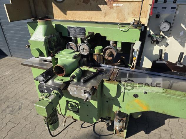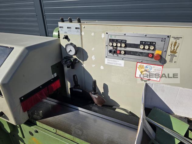 Dispone de una cepilladora de cuatro lados de Weinig con automatización, tronzadora doble, sistema de alimentación y aspiración. 1) Cepilladora de cuatro lados Weinig Hydromat 22 BL con lubricación automática, año de fabricación: 1987, ancho de trabajo: 220 mm, altura de trabajo: 140 mm, número de cabezas: 7, disposición de cabezas: abajo/derecha/izquierda/derecha/arriba/abajo/abajo, diámetro del husillo: 50 mm. 2) Unidad de automatización Kellfass que consta de sierra transversal doble, longitud: 5000 mm, transportador transversal de amortiguación y alimentación de rodillos neumáticos. Es posible la inspección in situ.