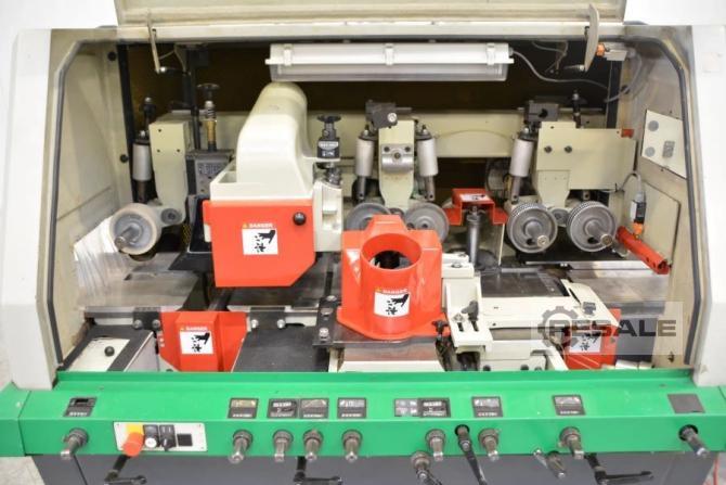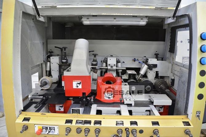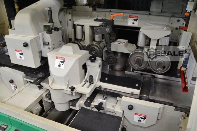 INDICAZIONI: Lunghezza di alimentazione: 1970 mm Larghezza lavorabile: 230 mm Altezza lavorabile: 120 mm Mandrino: Ø 40 mm Numero di fusi: 6 Trasmissione ad albero (4 kW) Velocità: 6000 giri/min Potenza installata: 43 kW Dotato di sistema ATS per la regolazione automatica Tensione: 380 V CONFIGURAZIONE DEL MANDRINO: I inferiore (5 kW) II destra (11 kW) III sinistra (11 kW) III superiore (11 kW) IV superiore (5,5 kW) VI fondo (4 kW) ATTREZZATURA: Completo di attrezzi Accessoristica Dopo Cristo