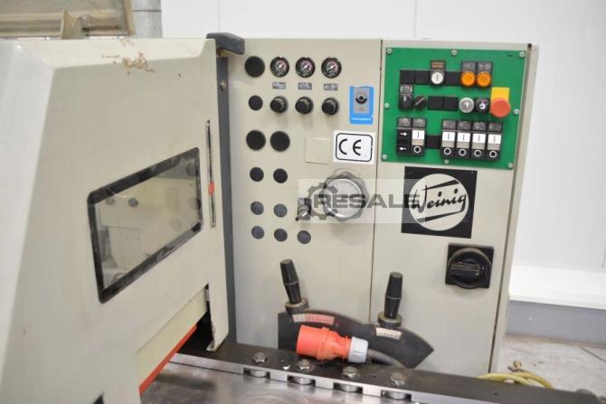 Scorniciatrice a 5 alberi WEINIG mod. PROFIMAT P23E – a norme CE - Composizione: - Oriz. inf. 5.5Kw - Vert. dx/sx 7.5Kw - Oriz. sup. 7.5Kw - Oriz. inf. 4 Kw - Larghezza 230mm - Sistema ATS - Anno 1997 (CE)
