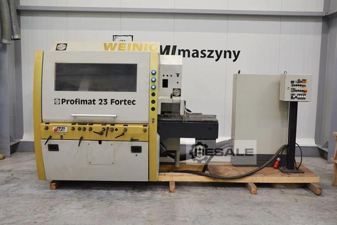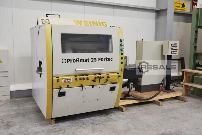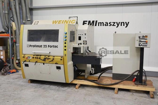 Scorniciatrice a 5+1 alberi WEINIG mod. PROFIMAT 23 FORTEC - a norme CE - Completa di dispositivo ATS - 1° albero orizzontale inferiore - 2° vert. dx - 3° vert. sx - 4° orizzontale superiore - 5° orizzontale inferiore - 6° universale - Larghezza 230 mm. - Traino a cardano - Anno 2002