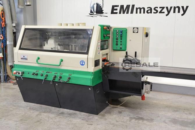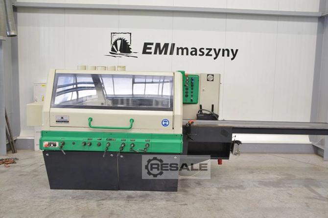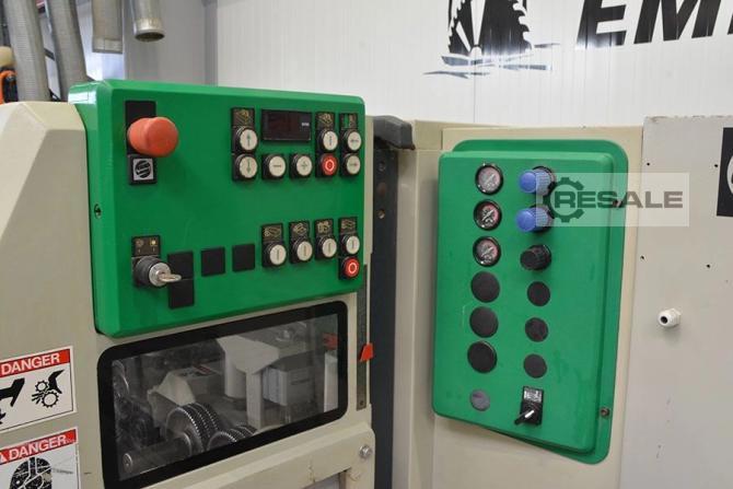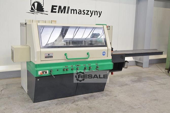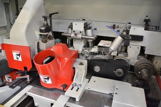 N. CATALOGO 6904 DATI TECNICI - larghezza massima del pezzo 230mm - altezza massima del pezzo 130mm 6 mandrini: 1) fondo orizzontale 230mm 5.5kW 2) verticale destro 130mm 3) verticale sinistro 130mm (2 ° e 3 ° mandrino) 7.5kW 4) orizzontale superiore 230mm 5.5kW 5) fondo orizzontale 230mm 5.5kW 6) universale 230mm, 360 regolabile 5.5kW - tutti i mandrini regolabili su / giù, destra / sinistra - mandrino 1,2,3,4,5 dotato di freno elettrico - diametro mandrino 40mm - 5 rulli introduttivi, dentati, tiranti dall'alto - dall'alto, 4 rulli, tiranti, gomma, lisci, di cui 2 doppi - dal basso, un rullo di gomma, tirando - nutrirsi di alberi cardanici - rulli pressati pneumaticamente - regolazione regolare della velocità di avanzamento - motore di alimentazione 4kW - pressione di esercizio 6-10 bar - regolazione elettrica dello spessore di piallatura - motore di sollev ...
