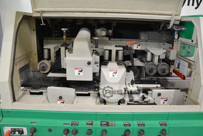 larghezza di lavoro 230 mm Altezza di lavoro 120 mm 5 teste Disposizione della testa: inferiore/destra/sinistra/superiore/inferiore diametro mandrino 40mm Regolazione delle teste su due assi controllo regolare della velocità di avanzamento rotazione mandrino 6000 giri/min motori: 4kW; 5kW; 2x 5,5kW; 2,2kW