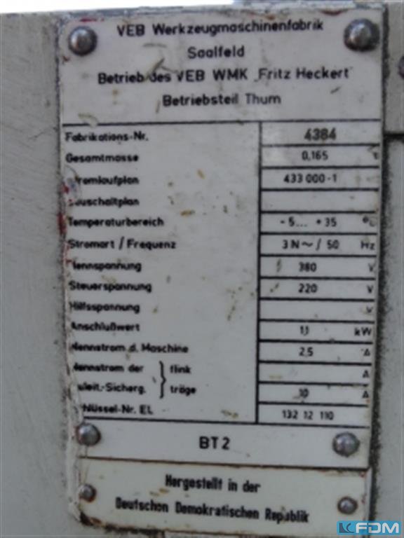 bore capacity in steel (diameter):10 mm throat:210 mm bore stroke:100 mm total power requirement:0,7 kW weight of the machine ca.:302 kg dimensions of the machine ca.: 620 x 800 x 1950 mm Table dimensions:350 x 250 mm spindle speeds::250, 355, 710, 1000, 1400, 2000, 2500 U/min