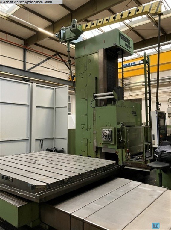 Horizontal borer Wotan B105Y Husillo: 120 mm Viajes: -X: 3000 mm -Y: 1450 mm -Z: 1280 mm Mesa: -1400 x 3000 mm -Pieza giratoria: 1130 x 1500 mm (rotación manual a cualquier grado) -Carga máxima: 7 tn Peso de la máquina: alrededor de 25 toneladas