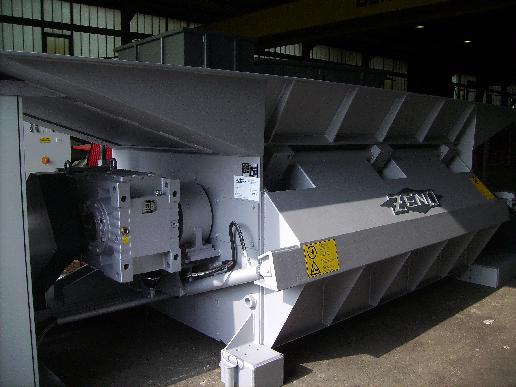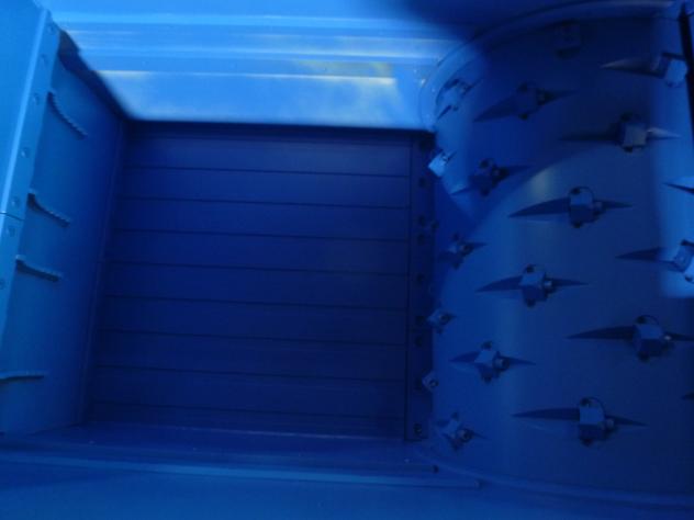 Niszczarka ZENO ZTLL 1200 x 1750 idealny do kruszenia pojemników IBC Przekrój wlotowy: 1200 x 1750 mm Napęd: 55 kW Obwód lotu wirnika: 1000 mm Wersja wirnika: 51 płyt tnujących, 50 x 50 mm Wersja ekranu: 40 mm Numer maszyny: G-1-96