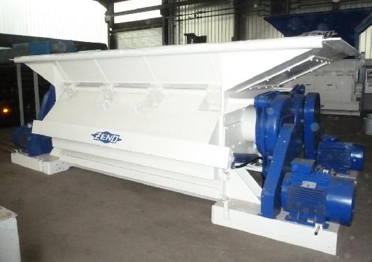 Zeno Niszczarka ZTLL 2000 x 1900 Przekrój wlotowy: 2000 x 1900 mm Napęd: 90 kW Obwód lotu wirnika: 710 mm Prędkość wirnika: około 110 obr./min Wersja wirnika: 51 szt. płyty tnące 80x80x55 mm na uchwytach narzędziowych Sieblochung: 20 mm Nóż licznikowy: z regulacją szczeliny tnącej Masa maszyny: około 16 500 kg Numer maszyny: A 36