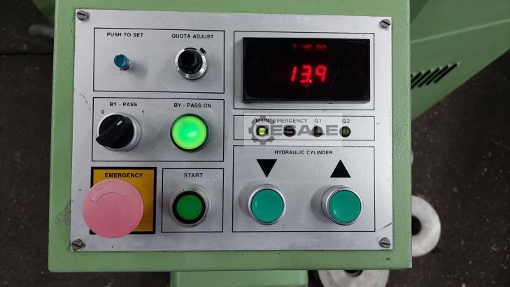 : 200 kN stroke length max.: 200 mm working feed: 10 mm/sec return speed: 20 mm/sec : 480x1060 mm work height max.: 900 mm toolpiece height max.: 200 mm total power requirement: 2,2 kW : 200x12 mm bending capacity max. - round: 48x4,0 mm weight: 500 kg Overall size: 1010x480x1120 mm Domestic equipments: - with semi-automatic control (99 programs with 16 steps each) - including bending bolt (without punch) - Tool holder for dies - Foot pedal Equipment: - Stamp, small U = 145 mm 85 °, H = 200 mm, R = 5 mm - Quick change monometer 85 °, H = 200 mm, V = 63 mm The data for this ad was created with ModulMWS - the software solution of LogoTech oHG.