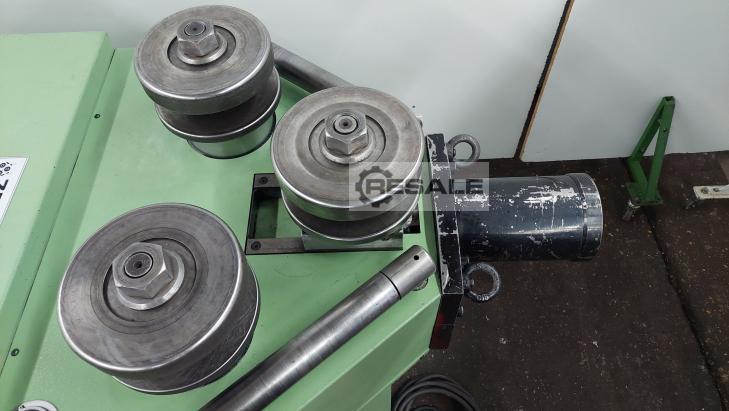 roll diameter: 215 mm shaft diameter: 60 mm Shaft revolutions: 6 U/min : 100x2 mm : 80x15 mm pressure hydraulic cylinder: 180 kN total power requirement: 2,2 kW weight: 720 kg dimensions: 1200x900x1700 mm Accessories / Equipment: - Three driven rollers - Hydraulic delivery of the upper roller - Working position horizontal and vertical - Digital display with memory function - Bearings with tapered roller bearings - Use of replaceable slide rails on the guide carriage - The standard roller set is included. It can bend various profiles flat iron, T-iron, solid material etc. The data for this ad was created with ModulMWS - the software solution of LogoTech oHG.